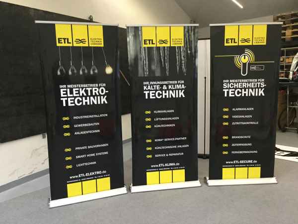 Wählen Sie zwischen mobilem Falt- und Bannerdisplay, Roll-Up, Kundenstopper oder Beachflag im individuellen Format und unterstreichen Sie wirkungsvoll Ihren Werbeauftritt bei Messen, Veranstaltungen oder direkt vor dem eigenen Laden.